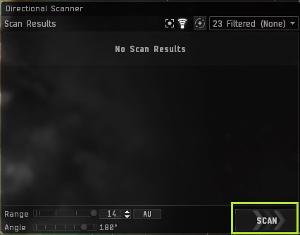 At the bottom of the "Scan Results" window, there is a slider that can be used to adjust the range and angle of the cone. The maximum range is 14.3 AU and scans either a sphere surrounding the ship for that distance or a cone ranging from 180 degrees all the way down to a narrow 5 degrees. With a little practice, you can use the combination of the dropdown selection list of objects you are searching for, the distance that you are able to detect them, and the directional cone to identify with a pretty good approximation where an object is located.